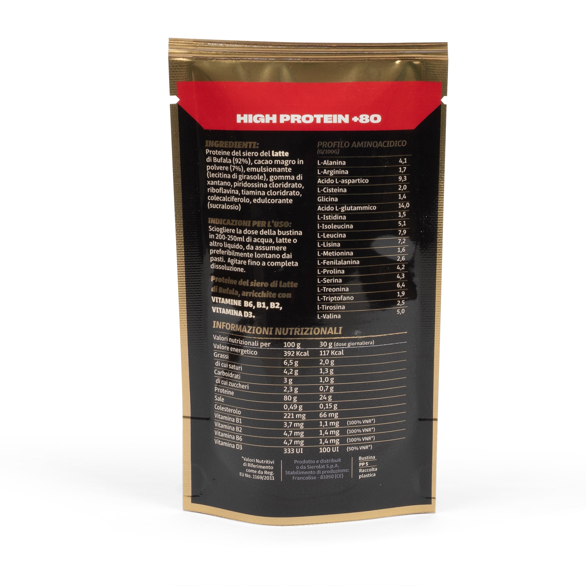 +80 High Protein - Buffalo Whey Gusto Cioccolato - Proteine in Polvere in Bustina Monodose
