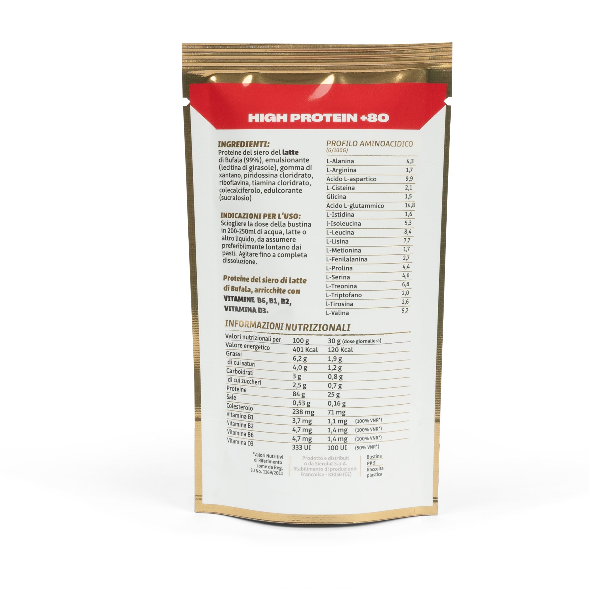 +80 High Protein - Buffalo Whey Gusto Puro - Proteine in Polvere in Bustina Monodose