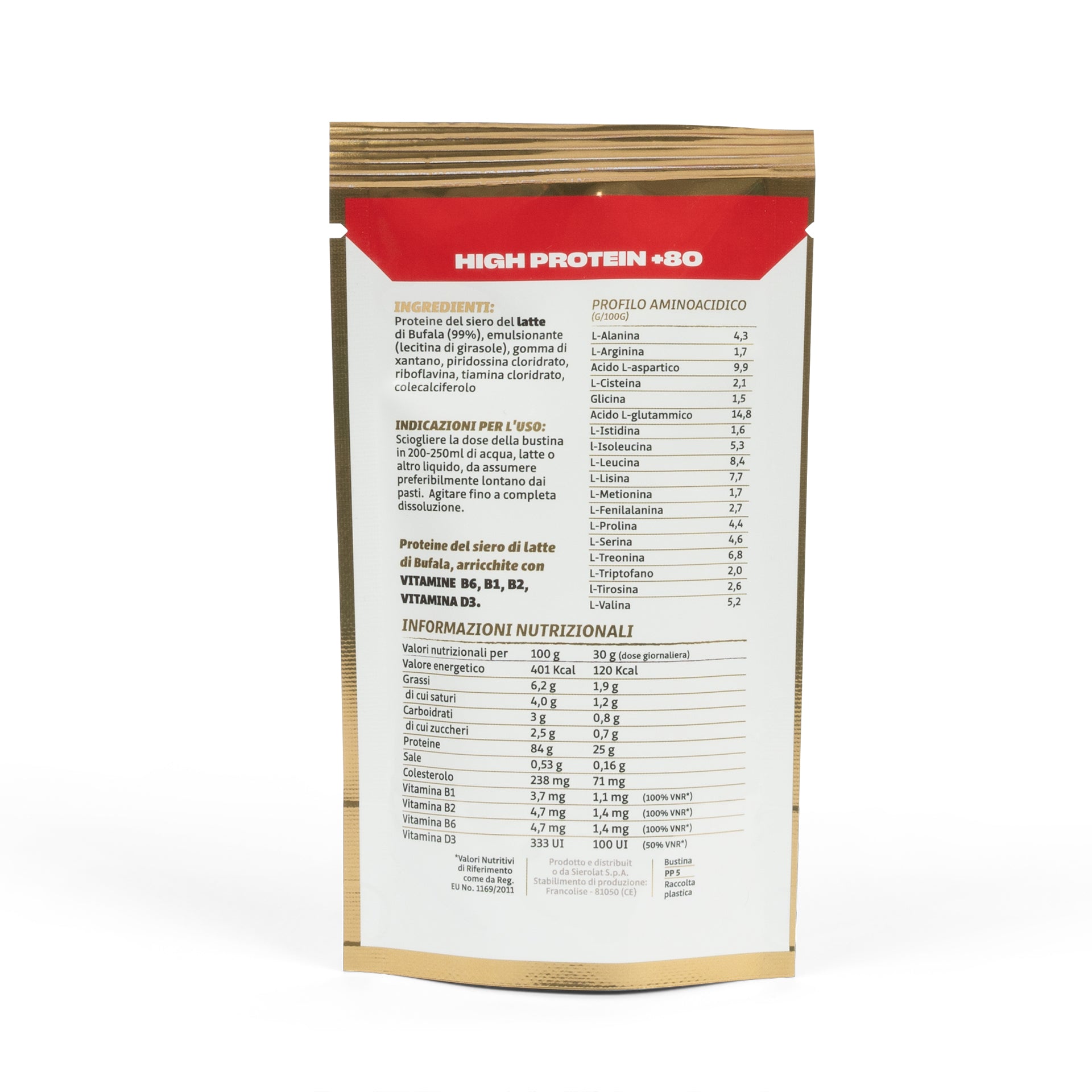 +80 High Protein senza Edulcoranti - Buffalo Whey Gusto Puro - Proteine in Polvere - Bustina Monodose