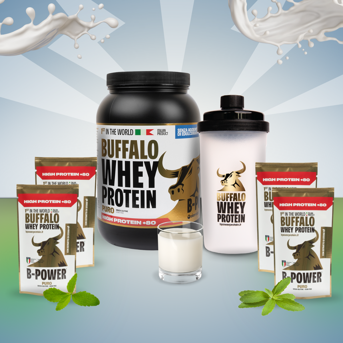B-POWER è realizzato a partire da Siero di latte di Bufala Mediterranea Italiana che può essere assunto per favorire la crescita della massa muscolare.