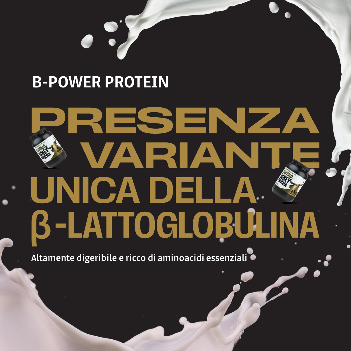 Buffalo Whey di B-POWER è un prodotto di altissima qualità che assicura 24g di Proteine e 5.5g di BCAA, senza aromi nè conservanti, privo di OGM ed arricchito in Vitamine del gruppo B che favoriscono il metabolismo energetico e Vitamina D per ossa sane e robuste.